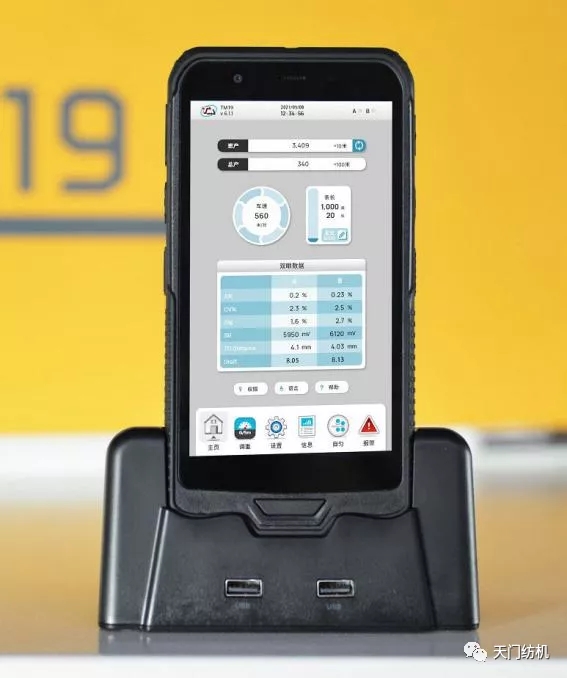天門紡機(jī)緊密結(jié)合并條工序的特點(diǎn),成功運(yùn)用了集多種功能于一體的工業(yè)級(jí)手持終端,可以對T1系列并條機(jī)實(shí)施穩(wěn)定、可靠、精準(zhǔn)的無線操控。