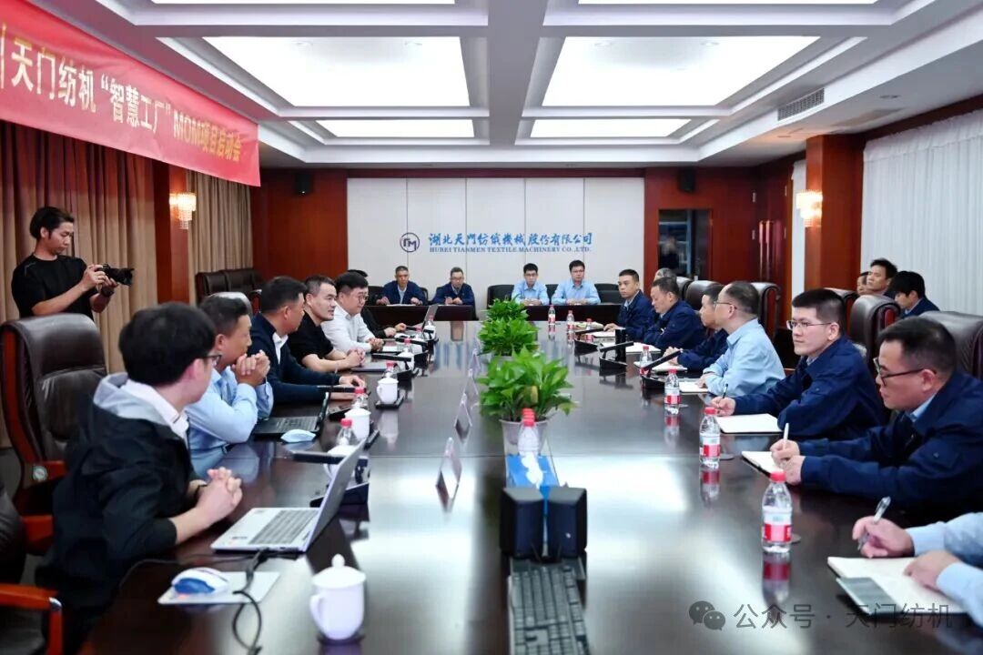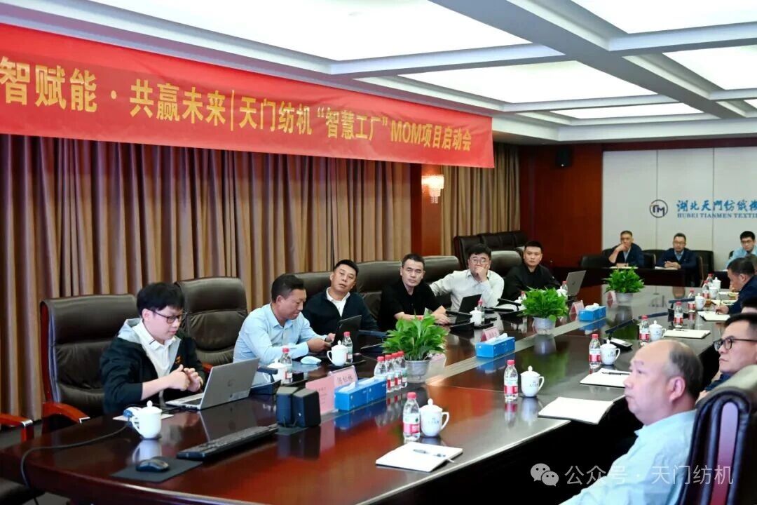 2025年10月15日下午,天門紡機在科技樓五樓會議室召開MOM系統(tǒng)項目啟動會。公司董事長沈方勇、項目合作方廣東盤古信息科技股份有限公司CTO劉鵬、副總經(jīng)理游畢濤及項目相關(guān)負(fù)責(zé)人出席會議,公司副總經(jīng)理胡進紅、鄧俊杰,有關(guān)部門、車間負(fù)責(zé)人和工作人員參加了會議。